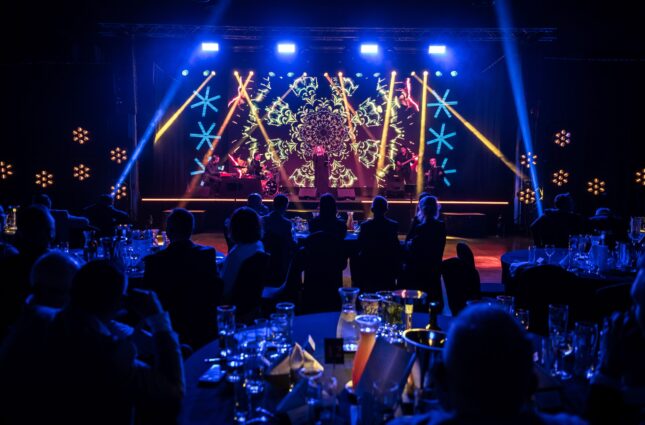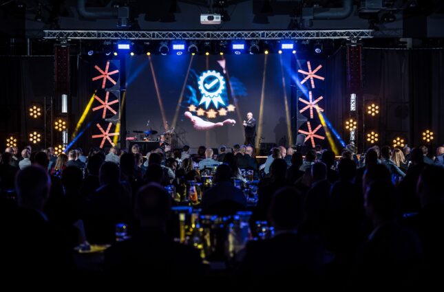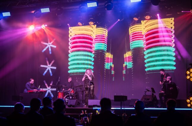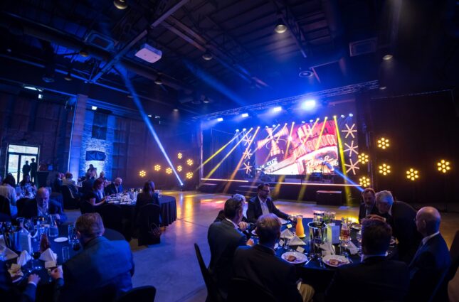 Oświetlona scena w Cukrowni Żnin przygotowana na jubileusz SAMES
